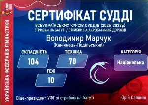 Марчук Володимир, старший викладач кафедри теорії і методики фізичного, виховання пройшов курси суддів у місті Шостка і отримав сертифікат судді національної категорії на чотирирічний термін.