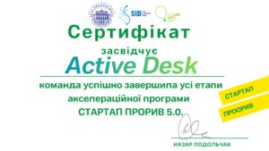 Участь стартап-команди Active Desk у акселераційній програмі «СТАРТАП ПРОРИВ 5.0»