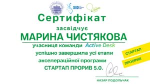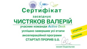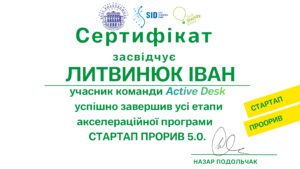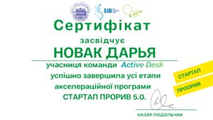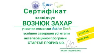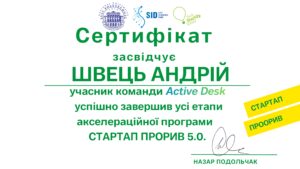 Участь стартап-команди Active Desk у акселераційній програмі «СТАРТАП ПРОРИВ 5.0»