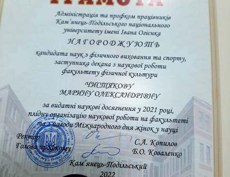 Вітаємо Чистякову Марину Олександрівну з нагородженням
