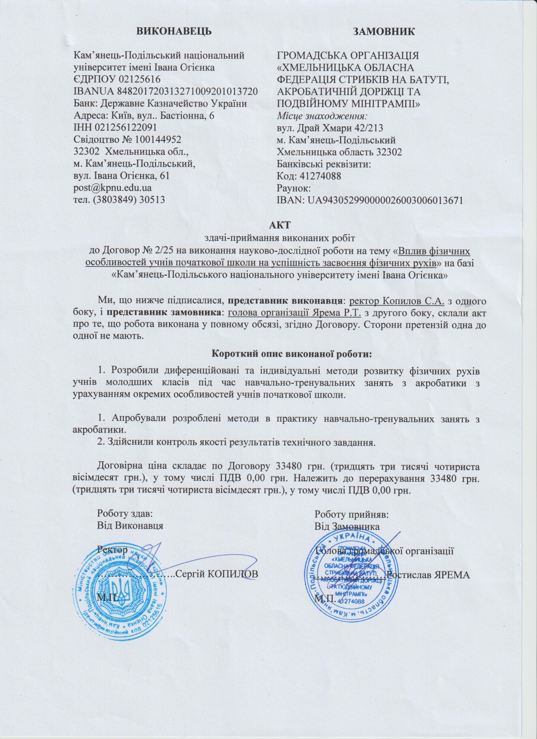АКТ здачі приймання виконаних робіт № 2/25 від 14.01.2025